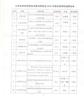 近日,山西省高等学校思想政治教育研究会2025年度优秀研究成果评选名单公布,我院教师闫晓瑞的论文成果《中西现代化比较视域下的中国式现代化话语体系构建》荣获一等奖。这一奖项深刻体现了我院在思想政治教育工作领域取得的显著成效和持续进步态势。